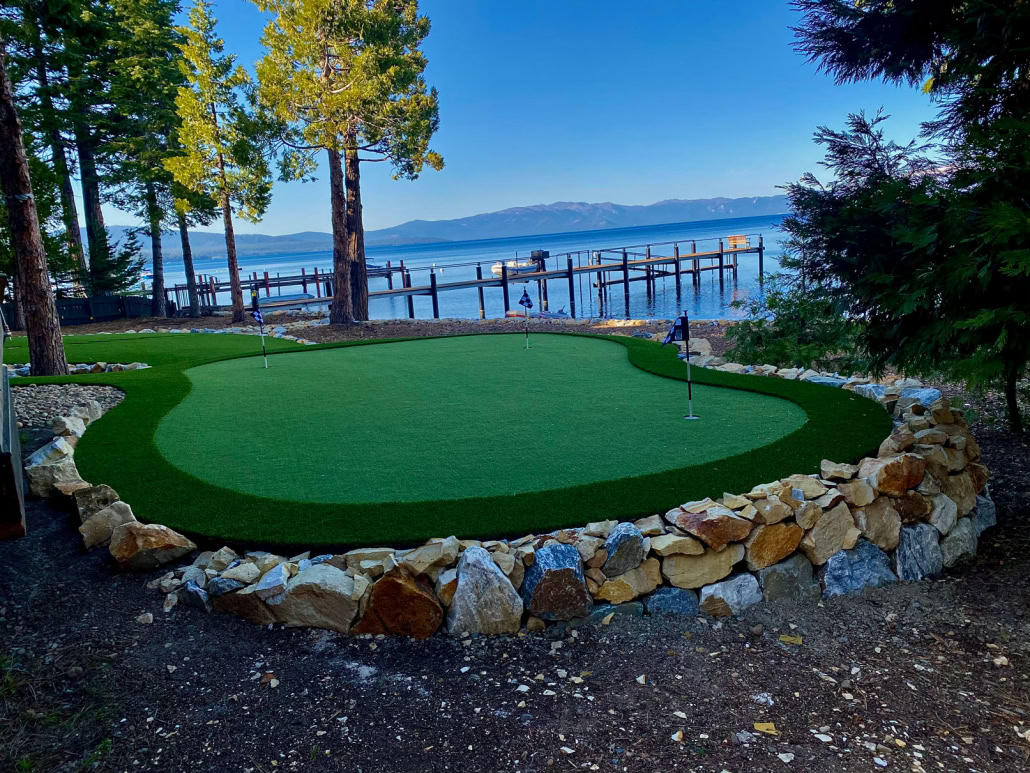 Lake Tahoe, CA — Balancing functionality with enhanced aesthetic appeal is a key priority for many property owners. One Lake Tahoe family opted for synthetic grass landscaping for their backyard in order to showcase the property’s surrounding natural landscape while still remaining comfortable and practical for the residents and their guests. In order to strike this balance and ensure a high-quality result, Natural Tech Artificial Grass & Landscaping was chosen to transform this Homewood lakefront oasis.