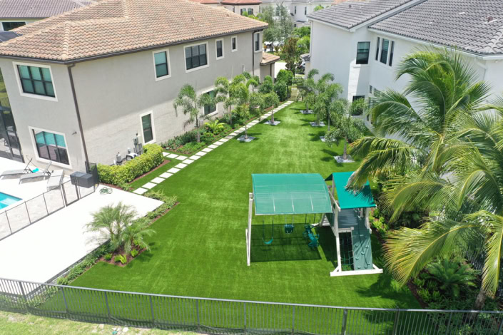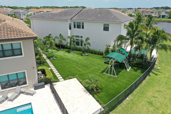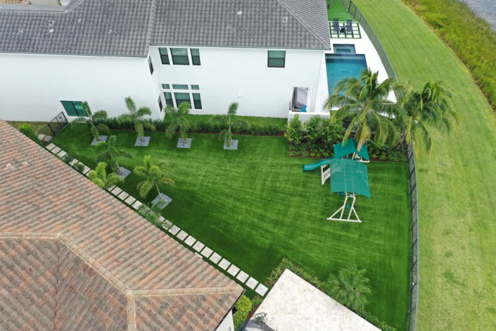 Delray Beach, FL — South Florida’s lush, vibrant landscape is one of its greatest appeals for local residents. However, natural grass is infamously high maintenance, especially if you have kids and pets enjoying the backyard space. That’s why many South Florida homeowners are switching to artificial grass for their high-value properties. One Delray Beach, FL homeowner turned to Turf Concepts to install verdant Synthetic Grass Warehouse turf in their luxury backyard, contrasting it with beautiful palm trees and bright hardscaping for a truly transformed outdoor space.