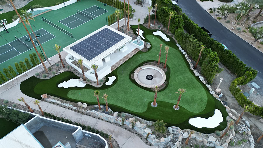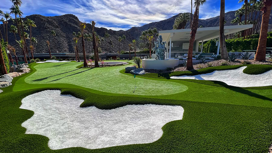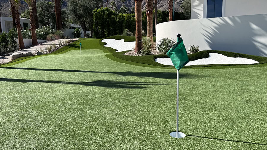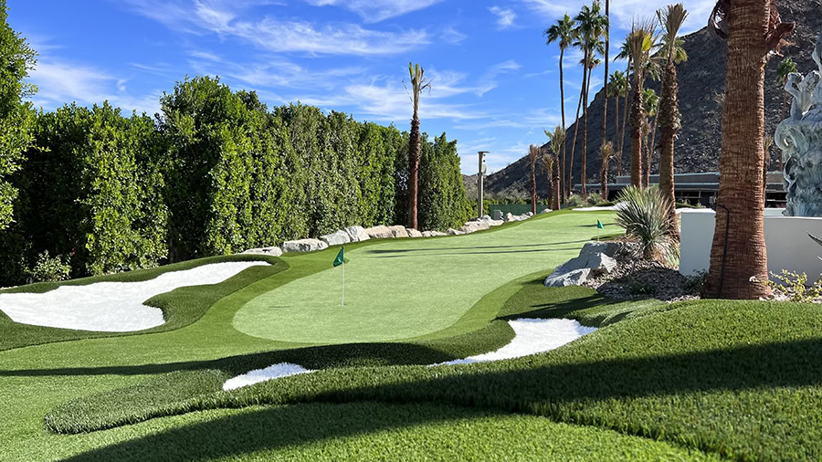 Rancho Mirage, CA — There are few better ways to spend a summer in the Coachella Valley than enjoying a fun and leisurely game of golf. That’s why one Rancho Mirage homeowner sought an artificial grass putting green installation that would transform their barren backyard into their personal putting green paradise. Arizona TurfCo stepped up to the challenge, using SGW artificial turf to create a masterful putting green that is as breathtakingly beautiful as it is fun and engaging.